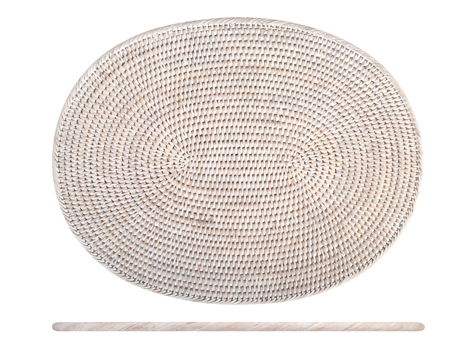 Tovaglietta tonda con bordo ondulato realizzata in rattan bianco. Diametro di 38 cm. Nel processo di decolorazione, il materiale originale è soggetto ad un trattamento specifico in grado di rimuovere il colore naturale del rattan, lasciandolo con un aspetto più chiaro e neutro. Ne risulta un materiale più luminoso, pulito e moderno, capace di abbinarsi a vari colori e materiali e adattarsi con estrema semplicità ad una varietà di stili d’arredamento, specialmente quelli più minimal.LeClub,Natural,TrendingNow
